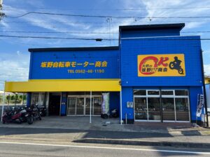 昨年末で本店を閉じさせて頂き、「名古屋南カワサキ販売」を、新たな「坂野自転車モーター商会」とし緑色から青色の店舗カラーに塗り替えて再始動いたしました。